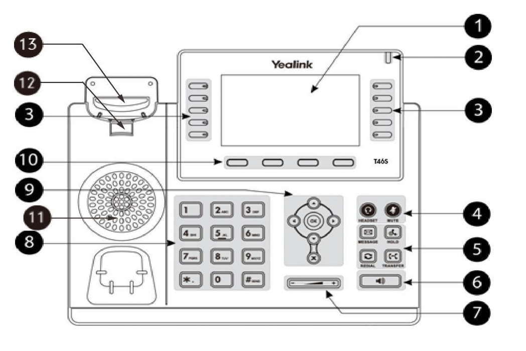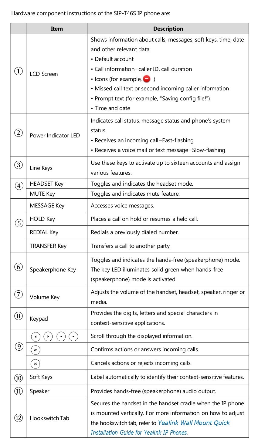Hardware component instructions of the SIP-T46S IP phone are: