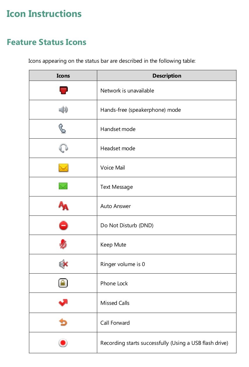 Icons appearing on the status bar are described in the following table: