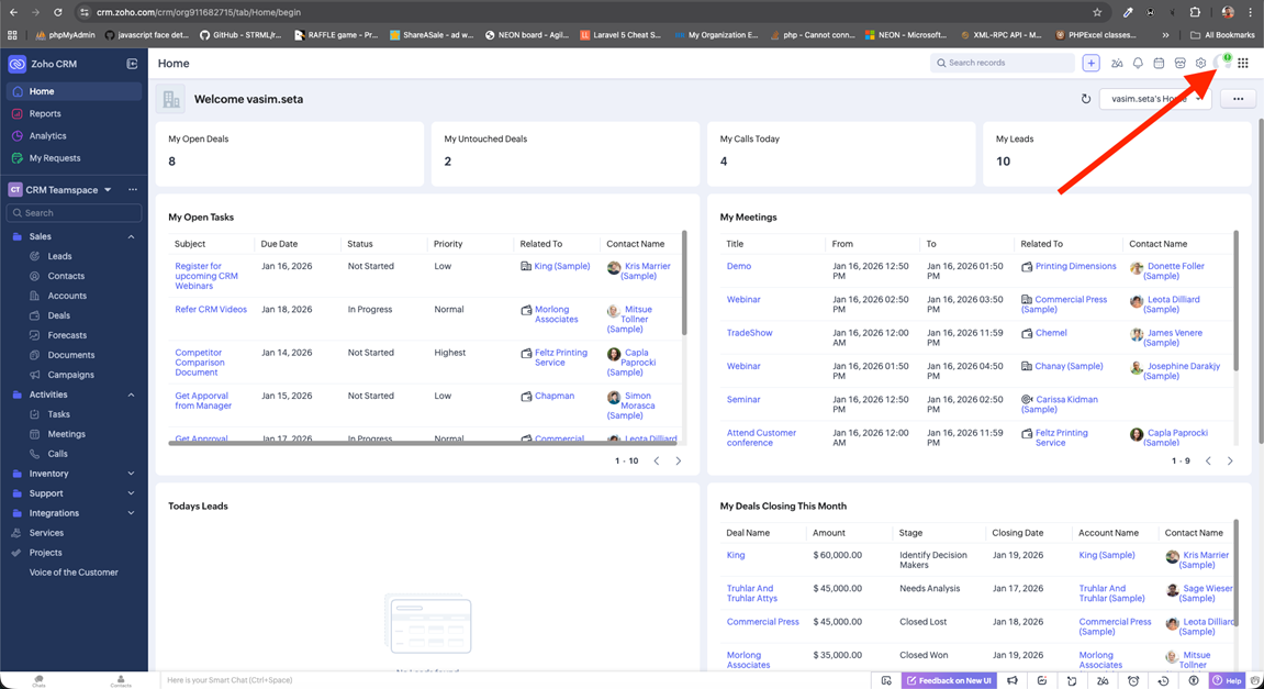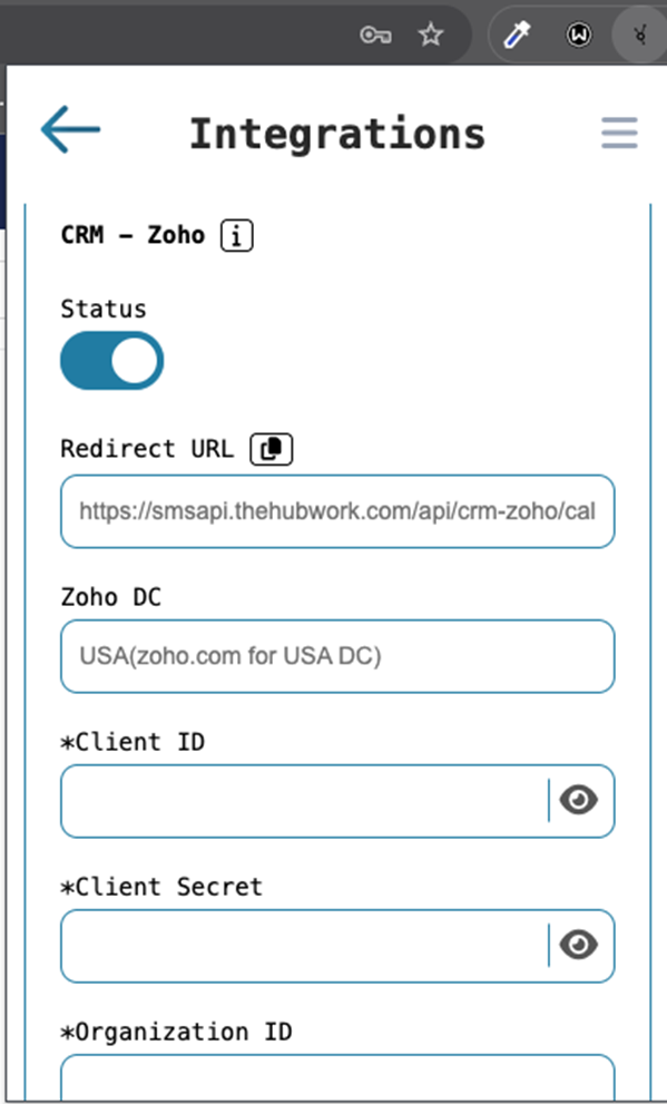 Note: Only Admin User can access these Integration Settings. All other users can see active CRM Settings and all users can authenticate their own user account.