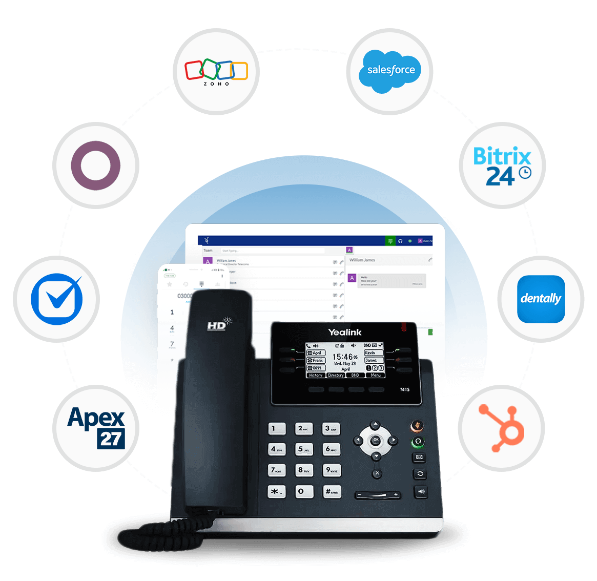 Wavetel supports crm and VoIP system integration with all major CRMs including Salesforce, HubSpot, Zoho, Clio, Odoo, Bitrix24, APEX27, and iamproperty. This crm phone system integration ensures calls, messages and customer interactions are logged automatically, giving sales, support and contact centre teams full visibility without switching platforms.